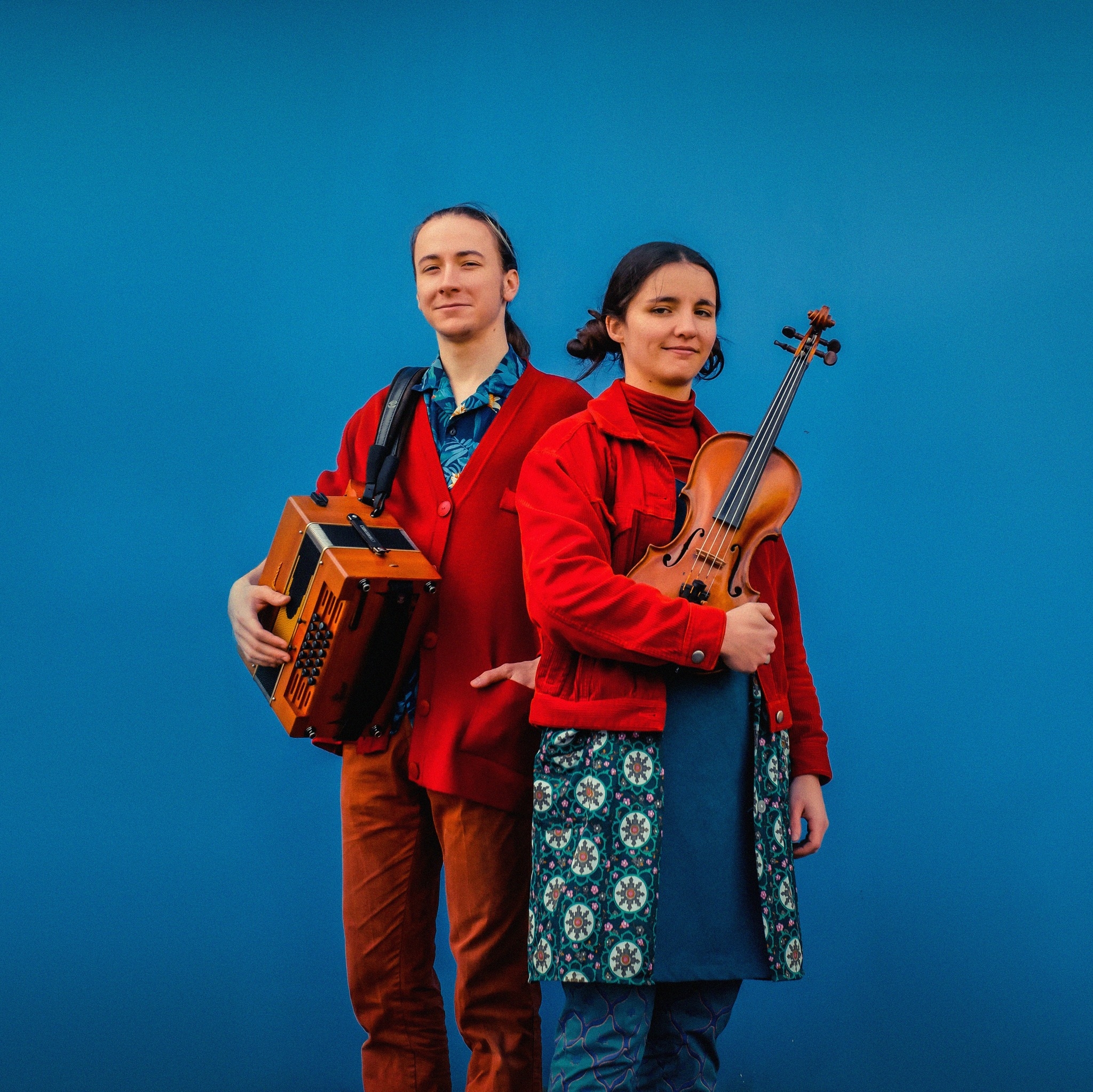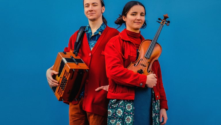 Rencontré à Rennes en 2021, Milena et Gabriel se plaisent à jouer ensemble un répertoire varié de la Bretagne à l’Alsace en passant par le Nord. Le violon de Milena aux doubles cordes percutantes et les rythmes et progressions harmoniques chatoyantes de Gabriel et son accordéon s’enchevêtrent et invitent malicieusement à la danse.